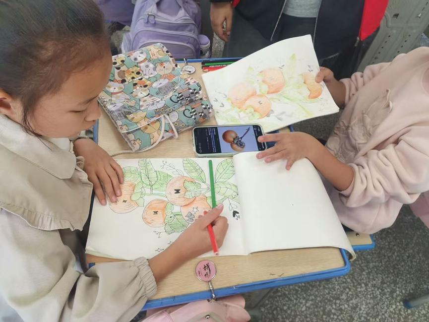 最后到了展示环节,志愿者们化身最热情的“观众”,在教室里巡回欣赏,时不时发出真诚的赞叹。“你们看,我们班的小画家们多厉害!每一幅画都独一无二,都是最棒的!”有人花了带霜的柿子,有人画了火红的枫叶,有人更是画出来会自动长出庄稼的粮仓……在志愿者的带领下,教室里响起了热烈的掌声,每个孩子的脸上都洋溢着自豪的笑容。孩子们纷纷举起自己的作品向志愿者展示,脸上洋溢着自豪的笑容。孩子又将自己的作品送给志愿者作为纪念。一张画纸,一支画笔,连接起志愿者与孩子们的纯真情谊,共同留下了一段温暖而美好的秋日回忆。