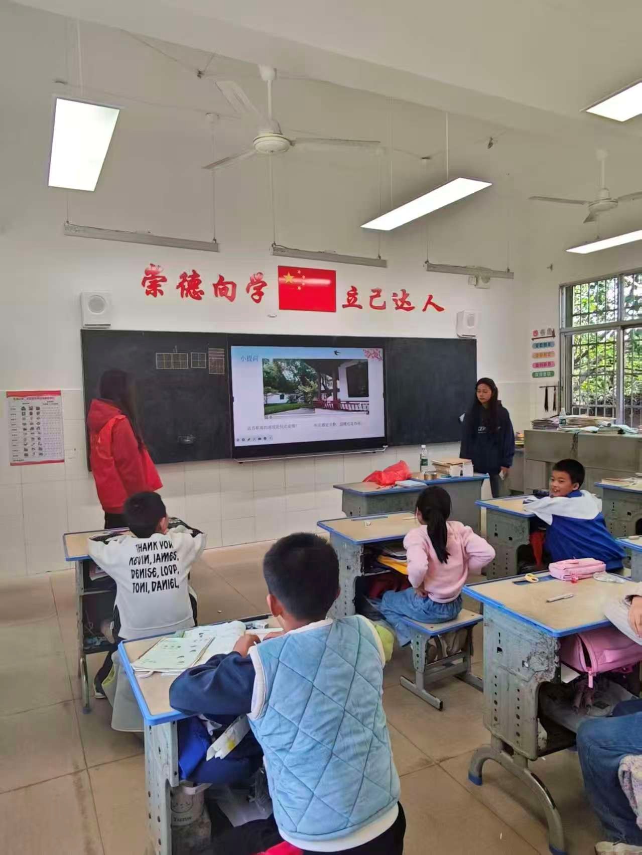 志愿者借助校园秋景图片,与孩子们交流“霜降时节的自然变化”,以生动的画面引导学生发现季节里的色彩与诗意,同时鼓励大家分享自己眼中的秋日校园,让美学感知与生活观察紧密结合。