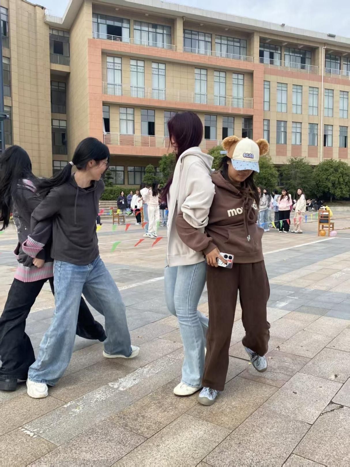 三人四足——默契与节奏的考验,2点10分,首个项目“三人四足”在艺术楼前的主赛道展开。参赛选手们用布条将相邻的小腿紧紧绑在一起,反复练习起跑、转弯、加速的节奏。哨声一响,大家齐声喊着“一二、一二”,在阳光下奋力前行。有的队伍配合得天衣无缝,步伐轻盈如舞蹈;有的队伍则因节奏错乱而左右摇晃,甚至差点摔倒,但队友间的笑声和加油声始终不断。在一次次的磨合中,大家感受到了彼此间的信任与默契。