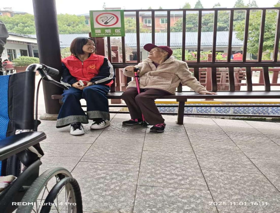 为了弘扬中华优秀传统敬老美德,促进社会文明进步、和谐稳定。2025年11月1日,九江学院艺术学院青年志愿者服务队9名学生走进南山公园敬老院,开展“情暖夕阳”志愿服务活动。