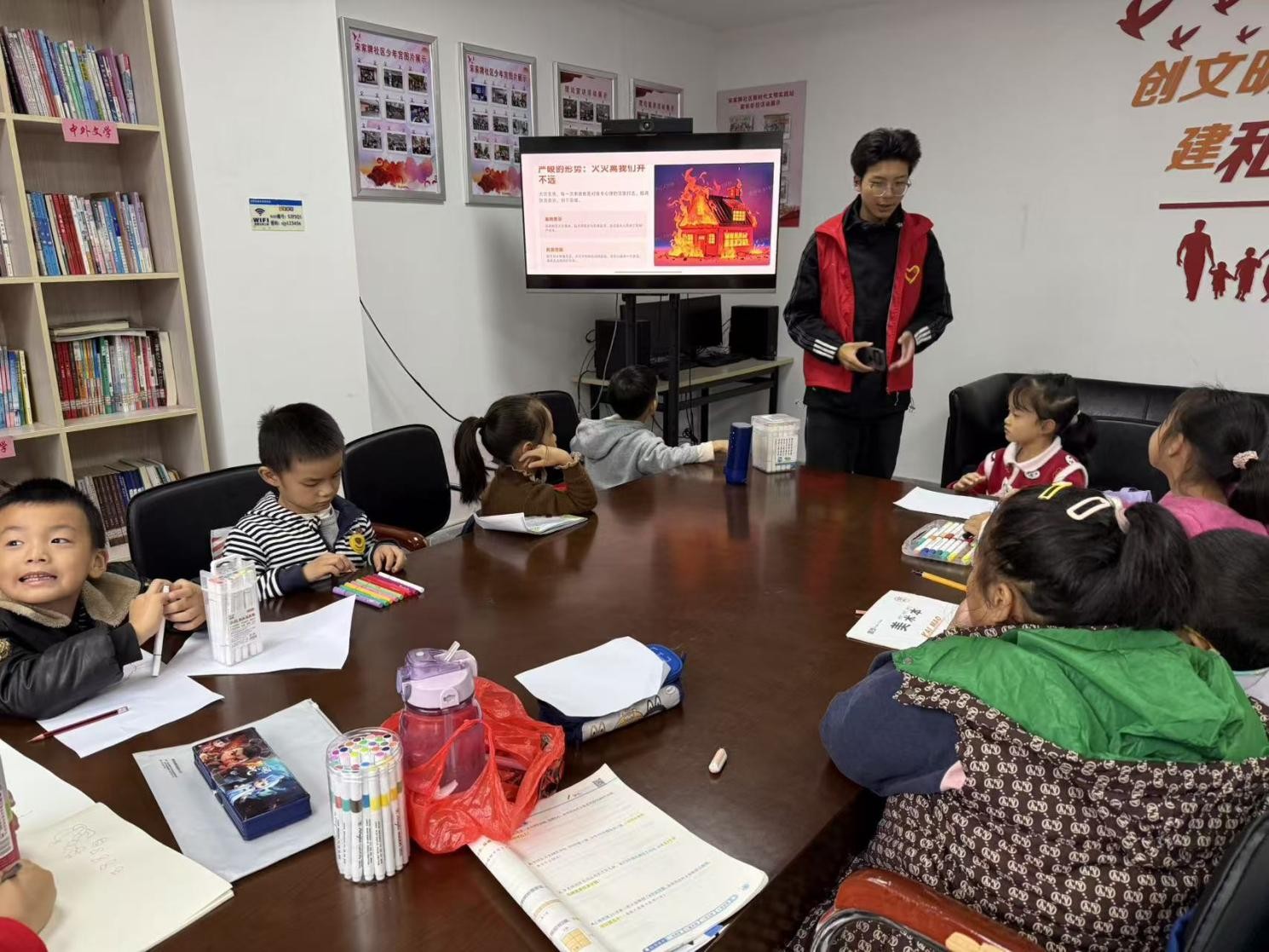 志愿者利用精心制作的PPT和短视频,向孩子们讲解了“全国消防日”的意义,以及家庭、校园中的消防安全常识。重点介绍了如何预防火灾、火灾报警电话“119”的正确拨打方式以及火场中用湿毛巾捂住口鼻、低姿逃生等关键自救技能。讲解过程中,孩子们积极互动,对消防安全知识表现出浓厚的兴趣。