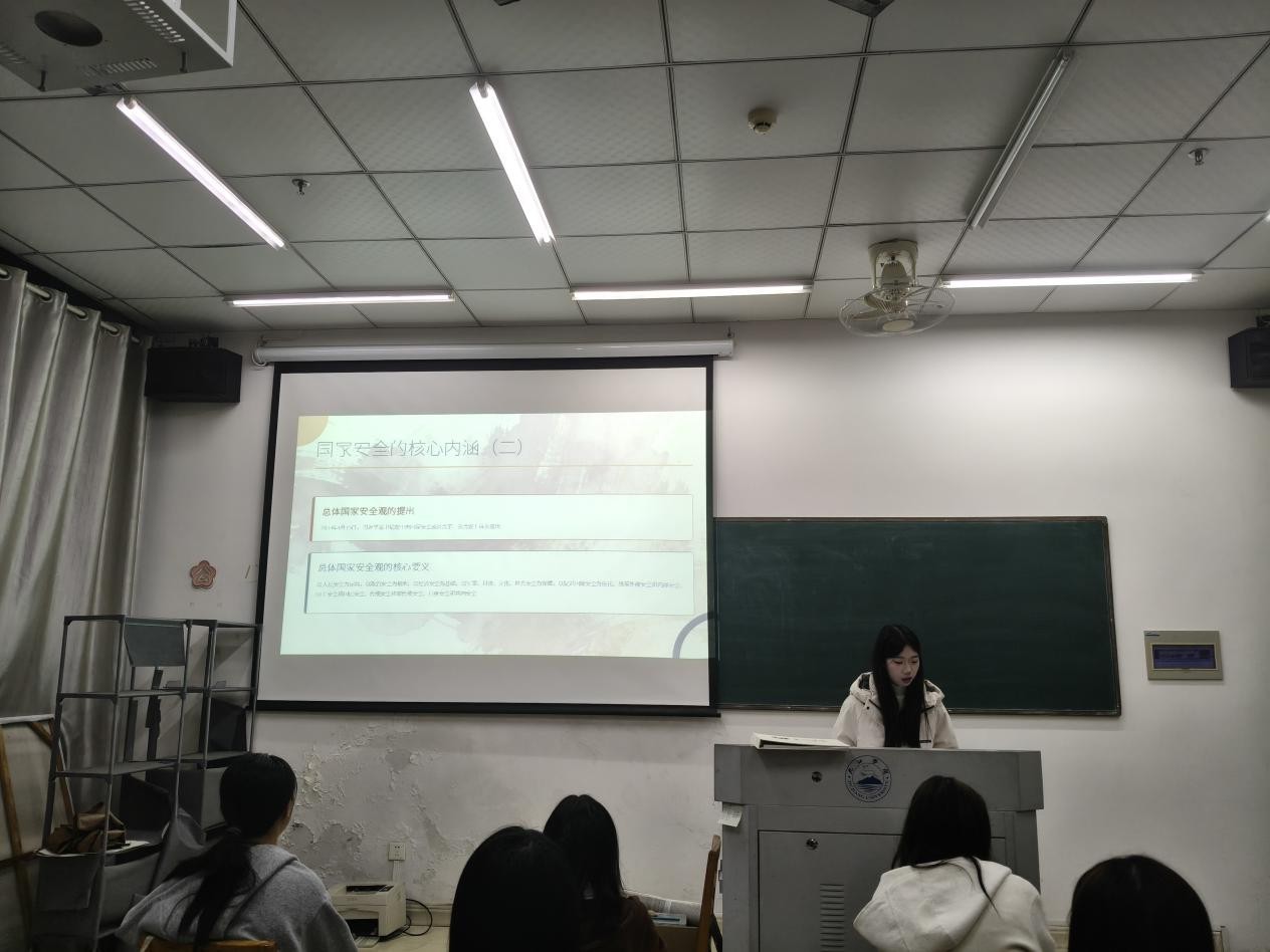 团课在庄严的团歌声中拉开序幕,团支书首先阐明活动意义,强调新时代青年与国家安全的紧密关联。通过播放国家安全主题微视频,从网络信息泄露、文化安全守护等贴近校园生活的案例切入,直观展现国家安全涵盖政治、经济、文化、网络等多个领域,打破“国家安全与己无关”的认知误区。