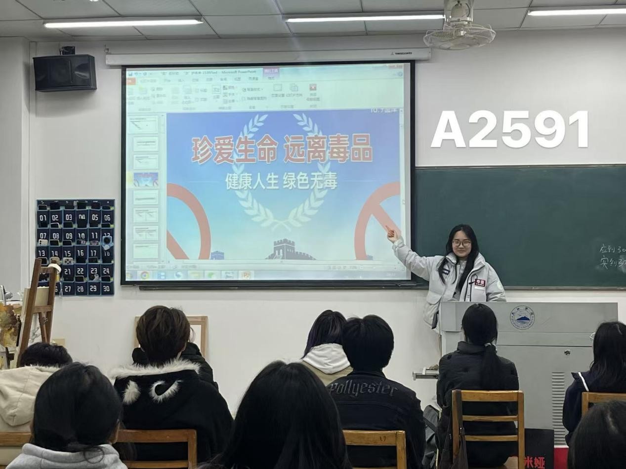 在团课开展过程中,各班围绕主题精心准备了PPT课件与演讲内容。主讲同学结合典型案例、法律法规与青少年身心特点,系统讲解毒品的种类、危害及防范措施,并融入艺术专业相关元素,通过海报设计、短视频解读等形式,增强教育的针对性与感染力。课堂上,同学们认真听讲、积极思考,在聆听与观看中深化了对禁毒知识的理解。