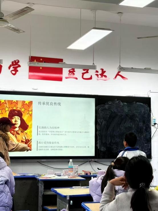 志愿者们以“雷锋:永恒的精神坐标”为主题, 为孩子们带来生动的雷锋精神宣讲课。课堂上,志愿者通过动画短片、PPT 展示等形式,讲述雷锋同志助人为乐、爱岗敬业的感人事迹,还分享了当代志愿者的服务故事,引导孩子们理解“奉献、友爱、互助、进步”的志愿精神。孩子们认真观看雷锋主题动画,跟随志愿者的讲解感受雷锋精神的时代内涵, 在心中种下向善向美的种子