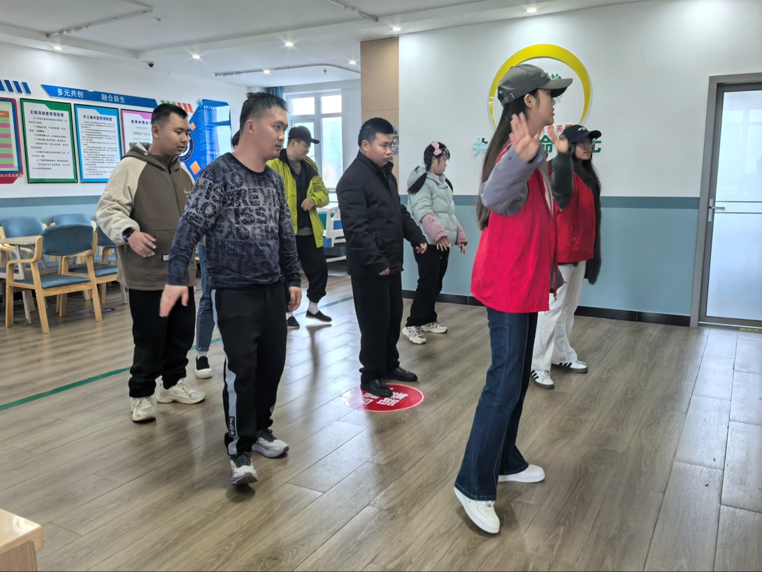 2026年3月27日,九江学院艺术学院青年志愿者服务队走进赣康心灵驿站莲花镇服务站,开展了一场以“舞动健康·爱心同行”为核心的公益志愿活动。志愿者们发挥专业所长,手把手教特殊群体学员跳简单健身舞,用轻盈的舞步、温暖的陪伴,为特殊群体的日常注入活力与欢笑,让艺术的温度传递到每一位学员心中。