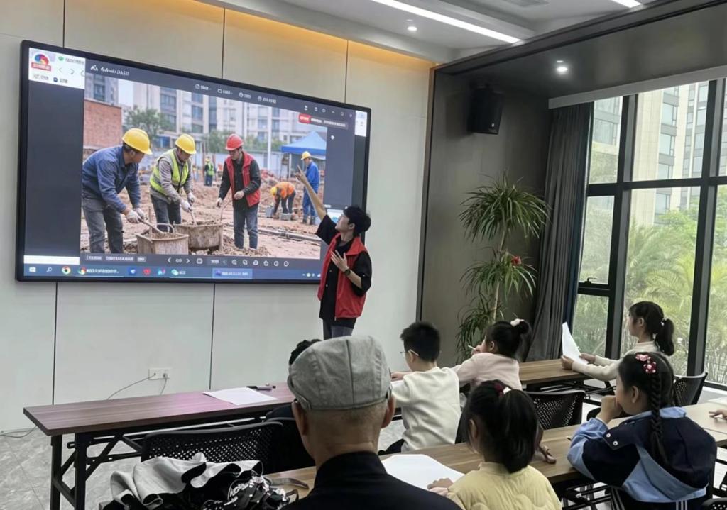 活动伊始,志愿者们播放了精心制作的劳动主题教育视频,通过生动画面、趣味场景与榜样故事,向孩子们讲解劳动意义、普及生活劳动小技能,引导大家树立 “劳动最光荣、劳动最崇高” 的价值观念。孩子们认真观看、积极互动,在轻松氛围中加深了对劳动精神的理解。