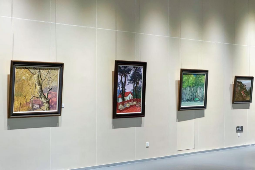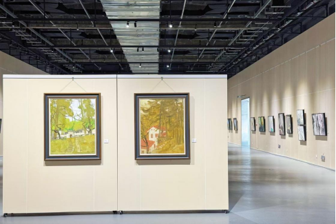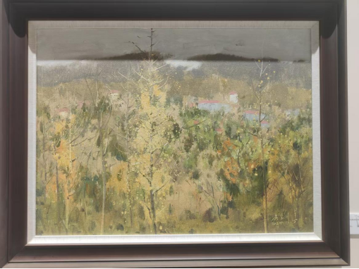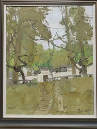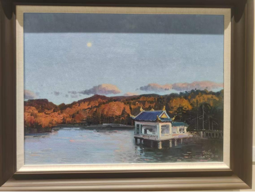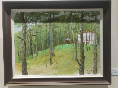 展览作品见证了艺术家们在庐山上赏庐山松、游如琴湖、临剪刀峡,他们将所见所感凝结为画布上生动的色彩,在图画山水的同时表达自我与时代,带领观众“走进”庐山的秋天,开启一场审美盛宴。同样是画松,中央美术学院教授吴长江笔下的松林挺立而苍翠,中国美术家协会油画艺委会委员王琨画中的庐山松则在红瓦房的映衬下融入了秋色,另有颜鸿取窗外一枝松入画……视角不同而各有其趣。还有四川美术学院教授翁凯旋画《如琴映月》,微妙的光影色调如隽永的散文诗;重庆市美术家协会副主席,四川美术学院原副院长、教授侯宝川描绘的庐山秋景,空间深远似能感到山风扑面;四川大学锦城学院教授邱光平的《禁止停靠》,于诙谐小景中得见其对生活的热爱和独特感知;许章伟用简笔勾勒出一篇游记,是对“卧游”的新时代个人诠释。