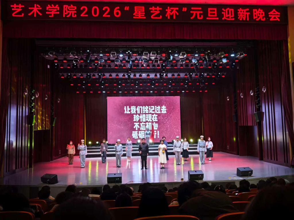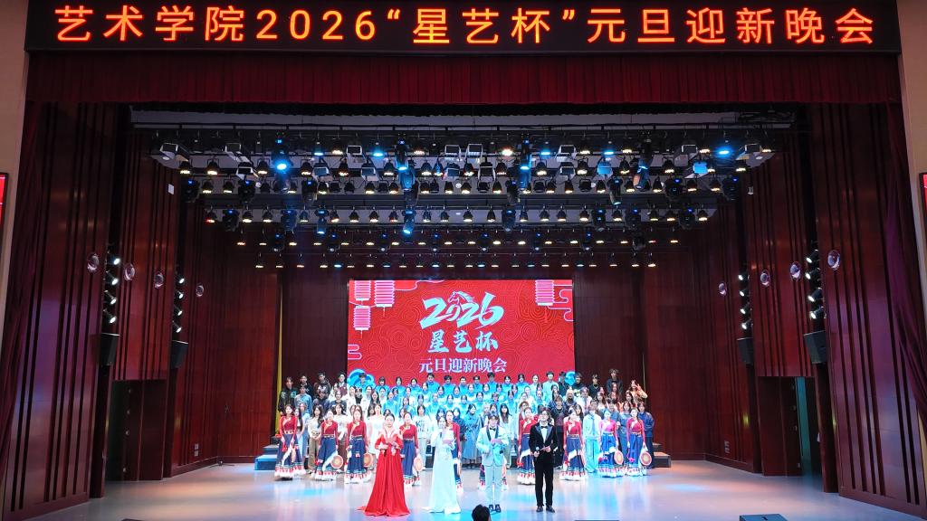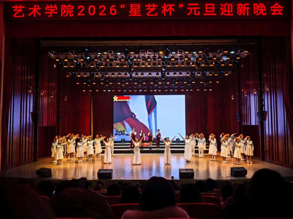 12月15日晚,艺术学院2026“星艺杯”元旦迎新晚会在音乐厅隆重举行。晚会主题为“以青春之名,赴艺术之约”,整场晚会充分展现了艺术学院学子扎实的专业功底与蓬勃的青春风采,吸引了数百名师生到场观看。